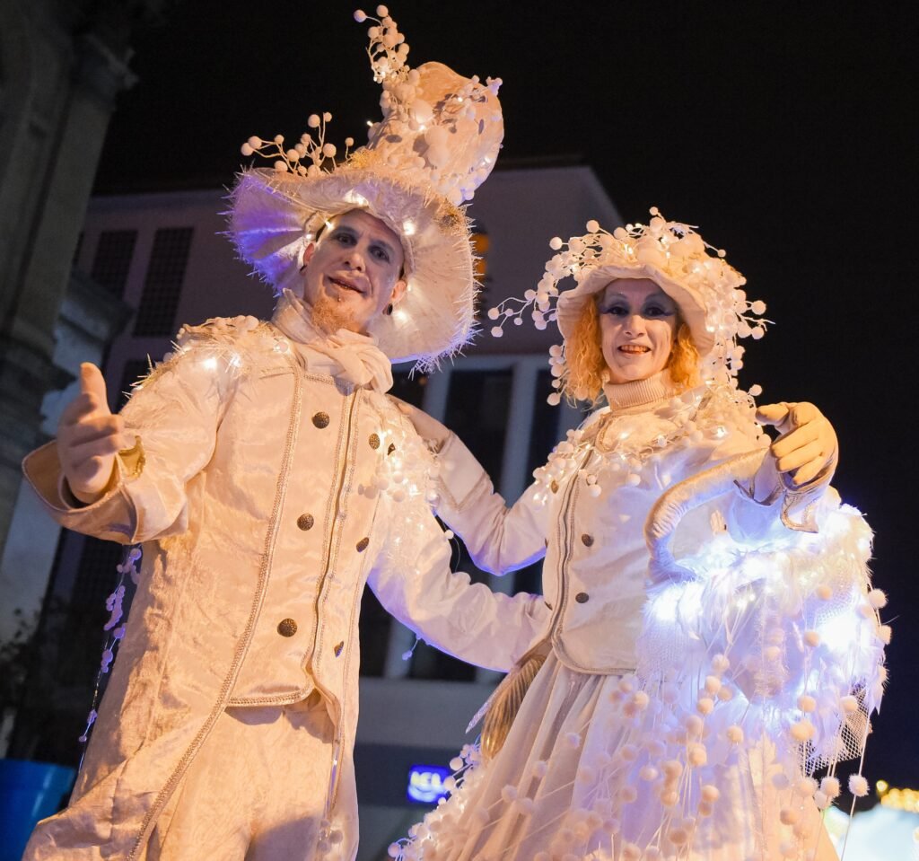 Lorsque le froid de l’hiver commence à effleurer les rues, un couple majestueux fait son apparition. Ils sont les messagers d’une saison empreinte de magie: le Comte et la Comtesse de l’Hiver. Leur arrivée annonce la douceur de Noël, une période où la lumière et l’élégance s’unissent pour réchauffer les âmes.